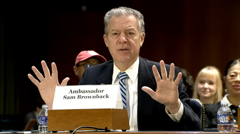 『國際西藏郵報2025年11月21日達蘭薩拉報導』前美国国际宗教自由事务无任所大使萨姆・布朗巴克 (Sam Brownback), 出席美國國會及行政當局中國委員會聽證會「中國對宗教的戰爭」時, 敦促美國支持達賴喇嘛尊者的中间道路。该大使表示:「若中國未能在60天內給予西藏真正自治權,美國應承認西藏獨立。」